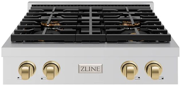 The ZLINE Autograph Edition 30 in. Paramount Gas Rangetop with 4 Burner DuoPro™ Cooktop in Stainless Steel and Polished Gold Accents (PSRTZ-30-G) features a high-powered gas cooktop with 4 hand-crafted Italian dual-ring brass burners and an expansive one-piece porcelain cooktop allowing you to master every meal.Read More