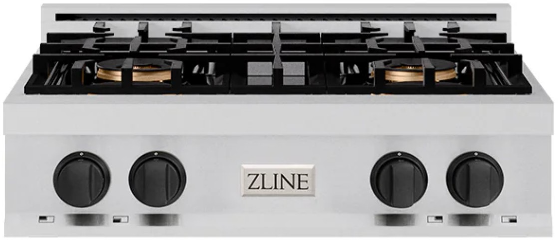 The ZLINE Autograph Edition 30 in. Classic Gas Rangetop with 4 Burner DuoPro™ Cooktop in Stainless Steel and Matte Black Accents (PCRTZ-30-MB) features a high-powered gas cooktop with 4 hand-crafted Italian dual-ring brass burners and an expansive one-piece porcelain cooktop allowing you to master every meal.Read More