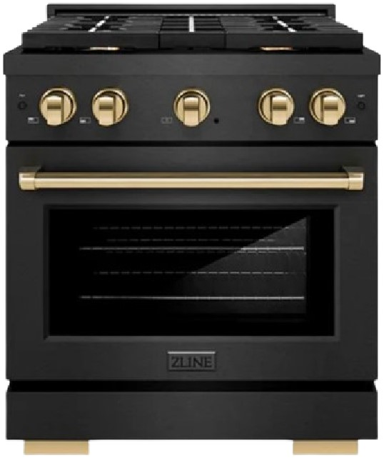Luxury isn’t meant to be left desired—it’s meant to be attainable. The ZLINE Autograph Edition 30 in. 4.2 cu. ft. Paramount Dual Fuel Range with 4 Burner Gas Cooktop and Electric Convection Oven in Black Satin Stainless Steel with Polished Gold Accents (SDRBSZ-30-G) combines the versatility of a gas cooktop with 4 Italian-made auto-reignition burners.Read More